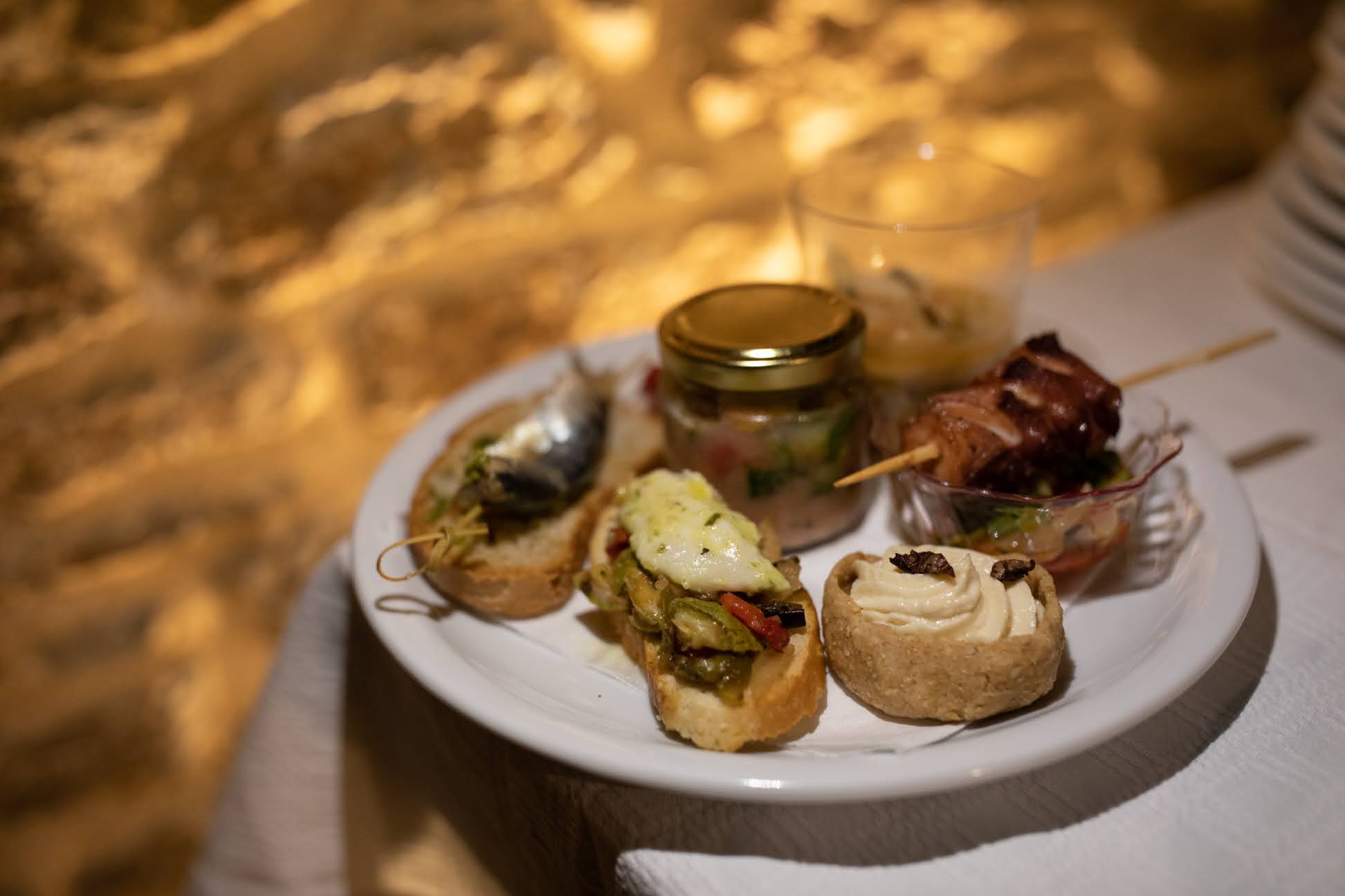 Hahles stuffed with Tarama white with almonds, roasted garlic, black olives