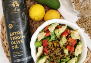 Lentil salad with avocado and Extra Virgin Olive Oil