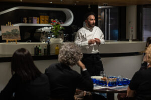 Oleve presented an original olive oil tasting experience inspired by Vincent van Gogh’s masterpiece “The Olive Harvest.” Van Gogh’s work portrays the beauty and multifaceted hues of the olive—from silver and blue to pink and orange. The transformation of the olive into an exceptional olive oil is a process that serves as a cornerstone of Greek tradition while simultaneously opening new perspectives in culinary creation.