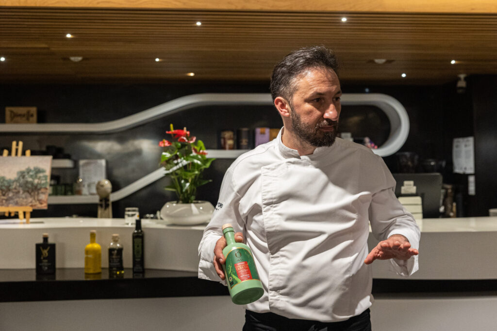 Taste creative recipes that showcase the authentic flavor of olive oil, accompanied by fresh naturally leavened bread and specialized products.
